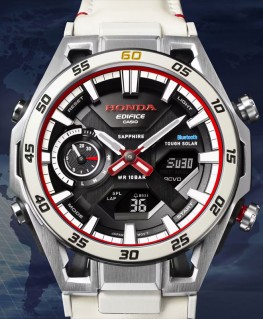24 octobre 1965 – jour historique où la RA272 a permis à Honda de remporter sa toute première victoire en Formule 1 lors du Grand Prix du Mexique. Pour célébrer cet anniversaire très spécial, EDIFICE s’associe à Honda à l’occasion d’une collaboration qui rend hommage à cette incroyable prouesse. lL’équipe de conception d'EDIFICE a travaillé en étroite collaboration avec Honda, afin de capturer l'essence et l'ingénierie de cette voiture emblématique. La lunette reprend la couleur exacte de la RA272, le Championship White, marquant ainsi pour la première fois l’utilisation de cette teinte iconique sur l’extérieur d’une montre. Sur le cadran au niveau de la 60ème minute, le nombre « 60 » est gravé dans des tons dorés afin d’honorer le 60ème anniversaire de cette victoire historique.
