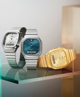 Que tu sois à la recherche d’une montre capable de moderniser ton style rétro, ou d’un accessoire vintage pour dynamiser tes tenues, la AQ-240E saura te satisfaire. Avec son double affichage analogique et numérique, la AQ-240 possède un design rétro mais moderne. Son cadran légèrement rectangulaire compensé par un boîtier légèrement arrondi et des courbes métalliques, respire la sophistication. La finition soleillée du cadran capte la lumière avec raffinement. Les index métalliques, à la fois vintages et modernes, viennent quant à eux rehausser le design. L'écran numérique à cristaux liquides situé à 6 heures offre une lisibilité exceptionnelle tout en conservant l’aspect harmonieux du design, créant ainsi une montre à la fois fonctionnelle et esthétique.