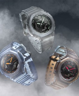 Ces nouvelles montres donnent vie à l'excitation obscure des boîtes de nuit et des festivals de musique, là où les stroboscopes laser viennent refléter le rythme de la musique. Nouvellement mise au point, la finition appliquée sur la surface du cadran lui donne un aspect épuré qui complète parfaitement le design minimaliste des montres GA-2100. Cette surface lisse est la toile idéale pour la finition brillante et la riche palette de couleurs, qui viennent ainsi mettre en valeur l'incroyable profondeur du noir laqué. Les différentes textures et couleurs des composants de la montre rappellent la scène musicale de fin de soirée. Des accents de couleurs néon scintillent comme une lumière laser, tandis que des matériaux translucides avec une finition mate.